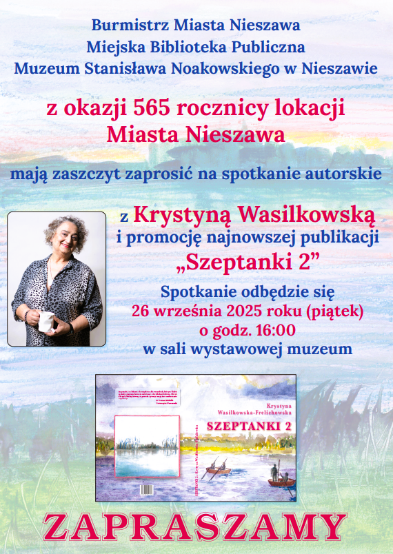 26 września 2025 roku w sali wystawowej Muzeum Stanisława Noakowskiego w Nieszawie odbyło się wyjątkowe spotkanie autorskie, współorganizowane z Miejską Biblioteką Publiczną w Nieszawie. Gospodarzem wieczoru była Krystyna Wasilkowska-Frelichowska – …