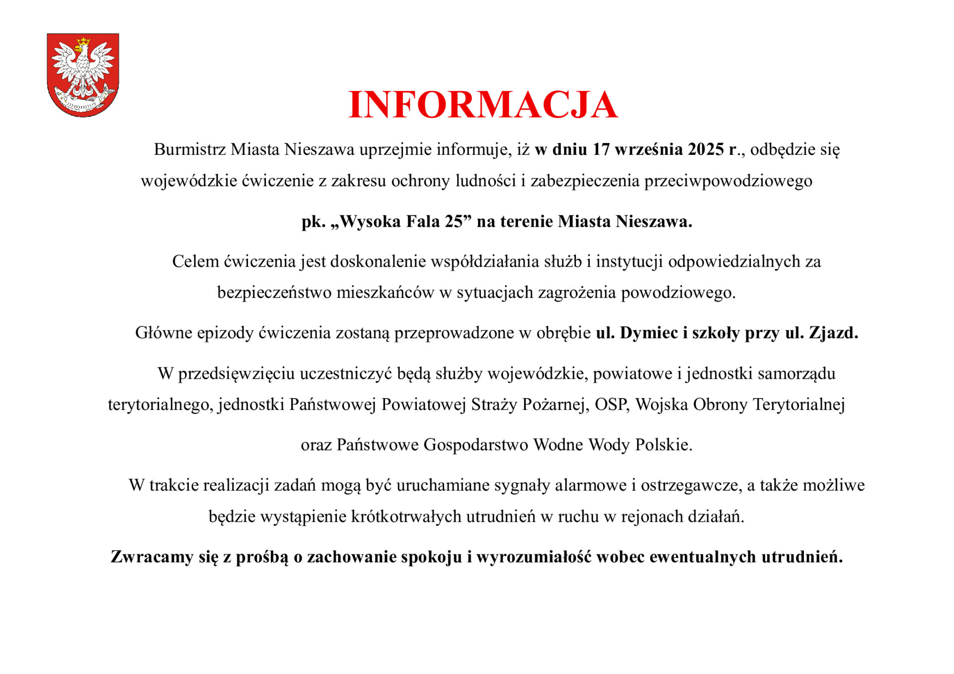 Ćwiczenia z zakresu ochrony ludności i zabezpieczenia przeciwpowodziowego – 17.09.2025