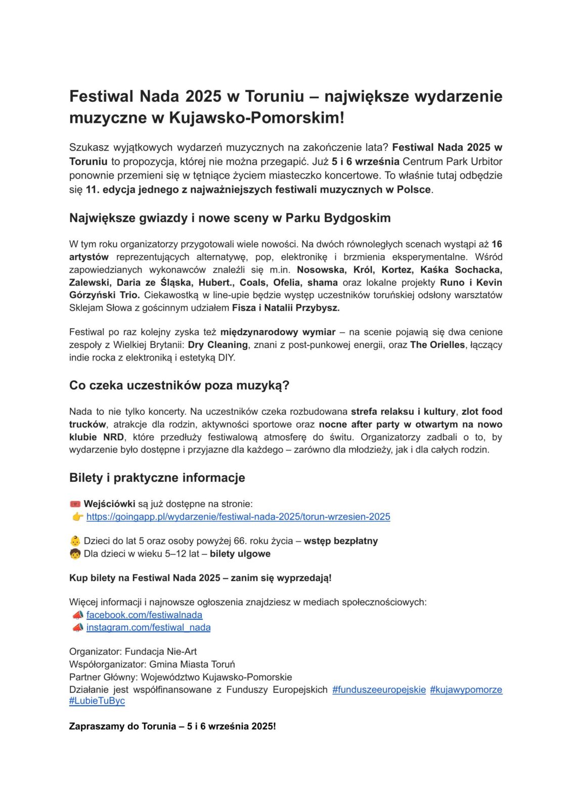Festiwal NADA – największy festiwal muzyczny w Metropolii Toruńskiej