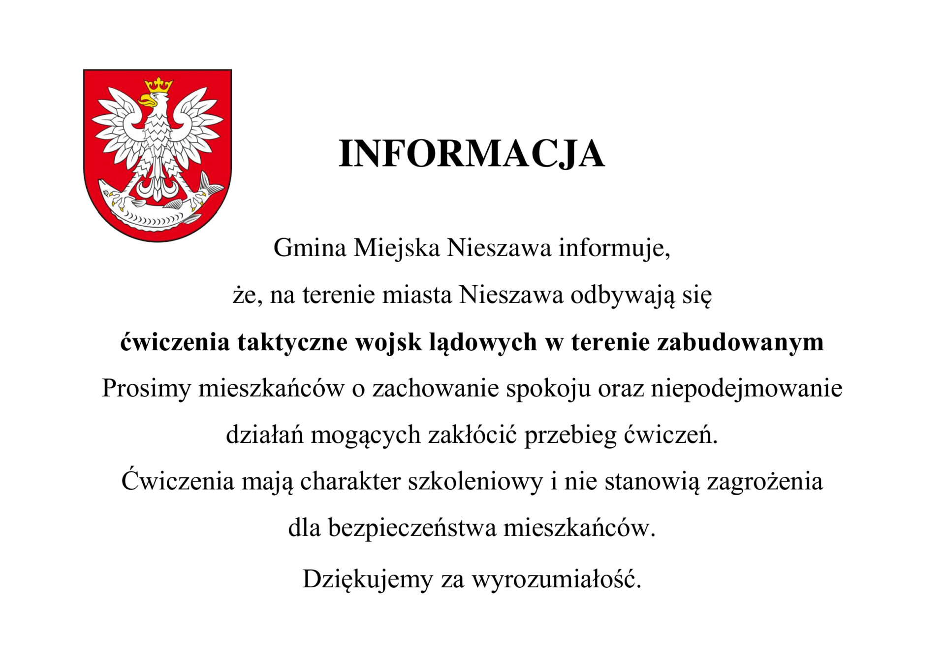 Informacja – ćwiczenia taktycznej wojsk lądowych