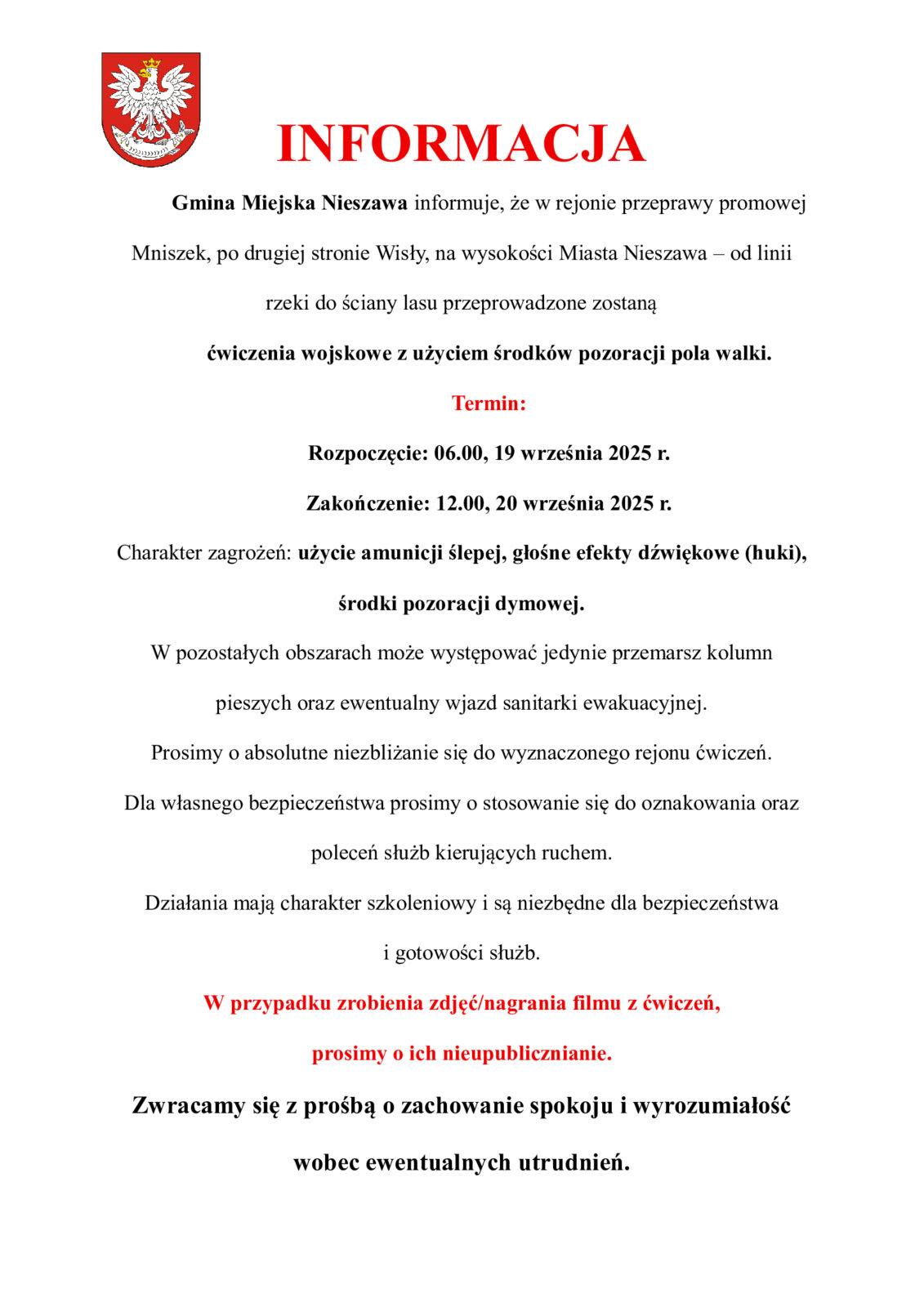 Informacja – ćwiczenia wojskowe z użyciem środków pozoracji pola walki