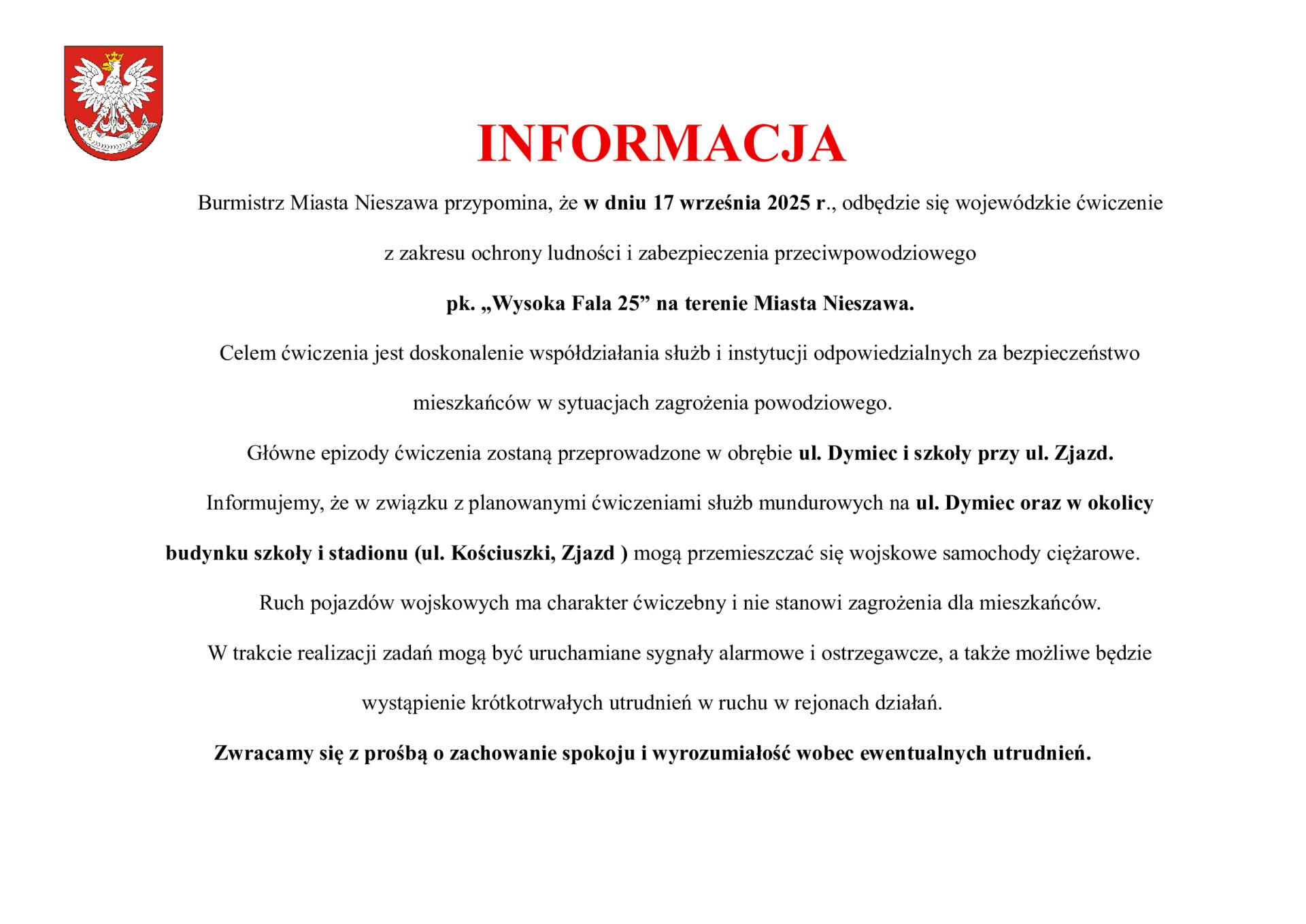 Informacja – ćwiczenia z zakresu ochrony ludności i zabezpieczenia przeciwpowodziowego