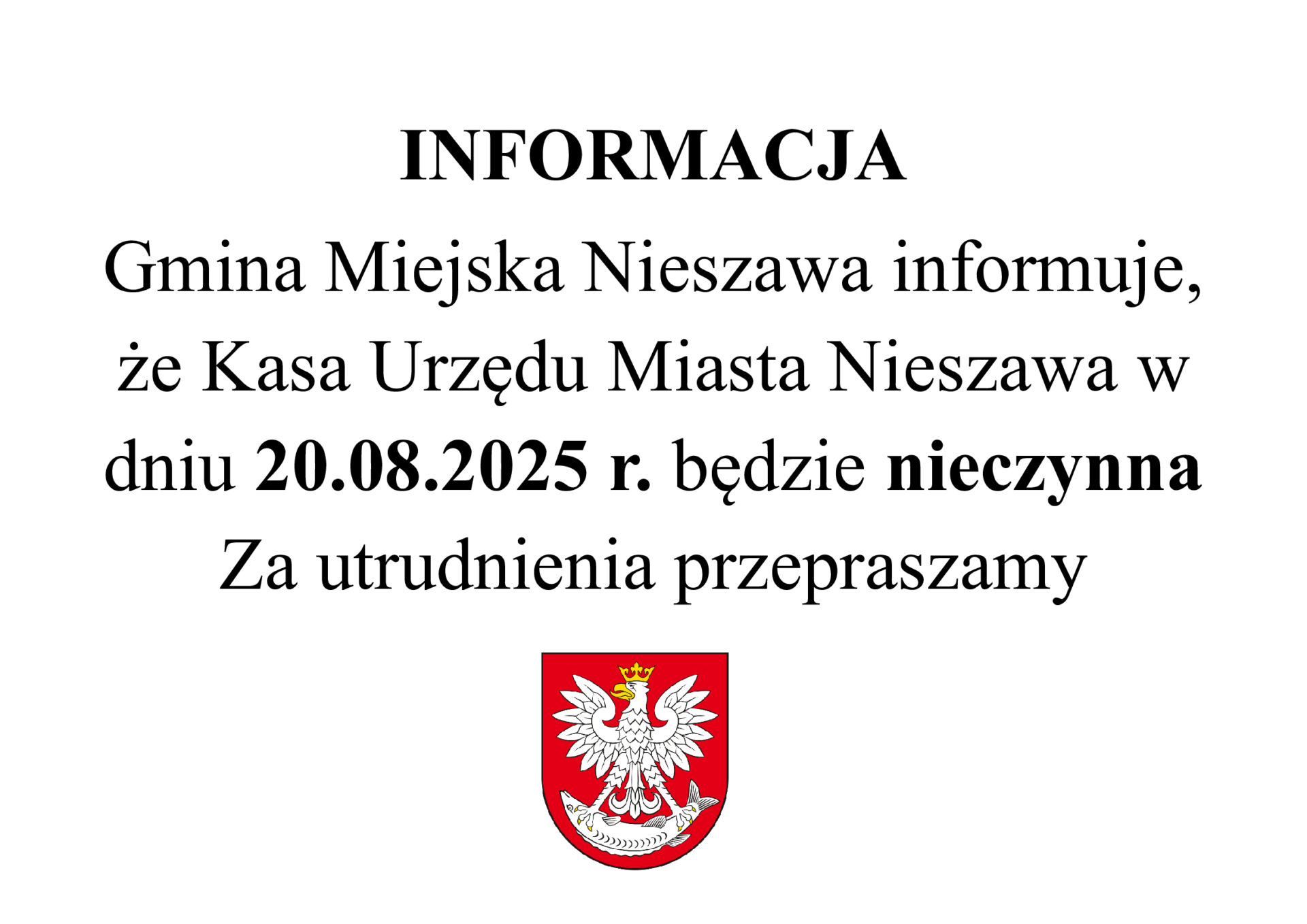 Informacja – Kasa UM w dniu 20.08.2025 będzie nieczynna