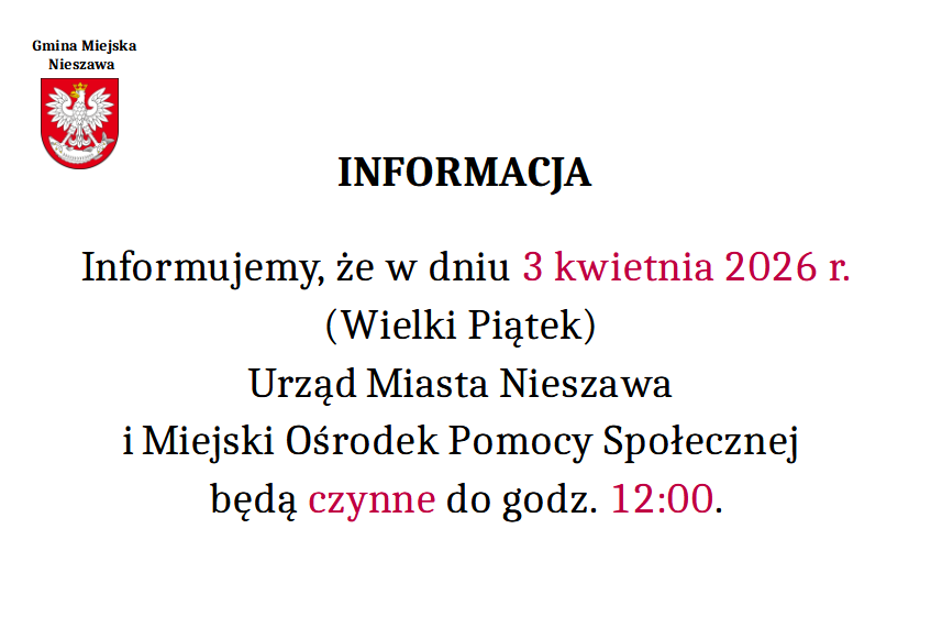 Komunikat zmiana godzin pracy – 03.04.2026