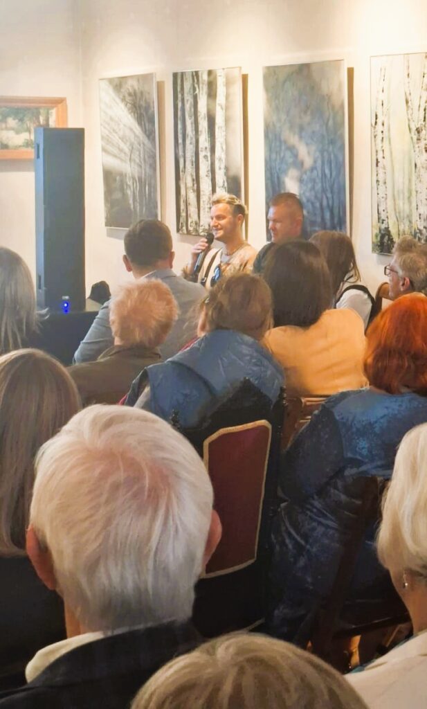 Spotkanie wzbogacili zaproszeni przez Panią Krystynę lokalni twórcy, czyniąc z wieczoru prawdziwe spotkanie sztuk. Tomasz Lewandowski i Konrad Grabowski, których prace zilustrowały publikację, opowiedzieli o swoim wkładzie w powstanie książki, ale również o swoich pasjach i miłości do Nieszawy. Niezapomnianych wrażeń dostarczyły również występy muzyczne – Ania Dunin-Borkowska oczarowała publiczność wykonaniem utworów „W moim magicznym domu” i „Taki kraj”, zaś prapremierowy występ Konrada Grabowskiego spotkał się z ogromnym entuzjazmem uczestników. Całość miała wymiar międzypokoleniowej współpracy, ukazując, jak różne talenty mogą wspólnie tworzyć opowieść o naszym mieście.