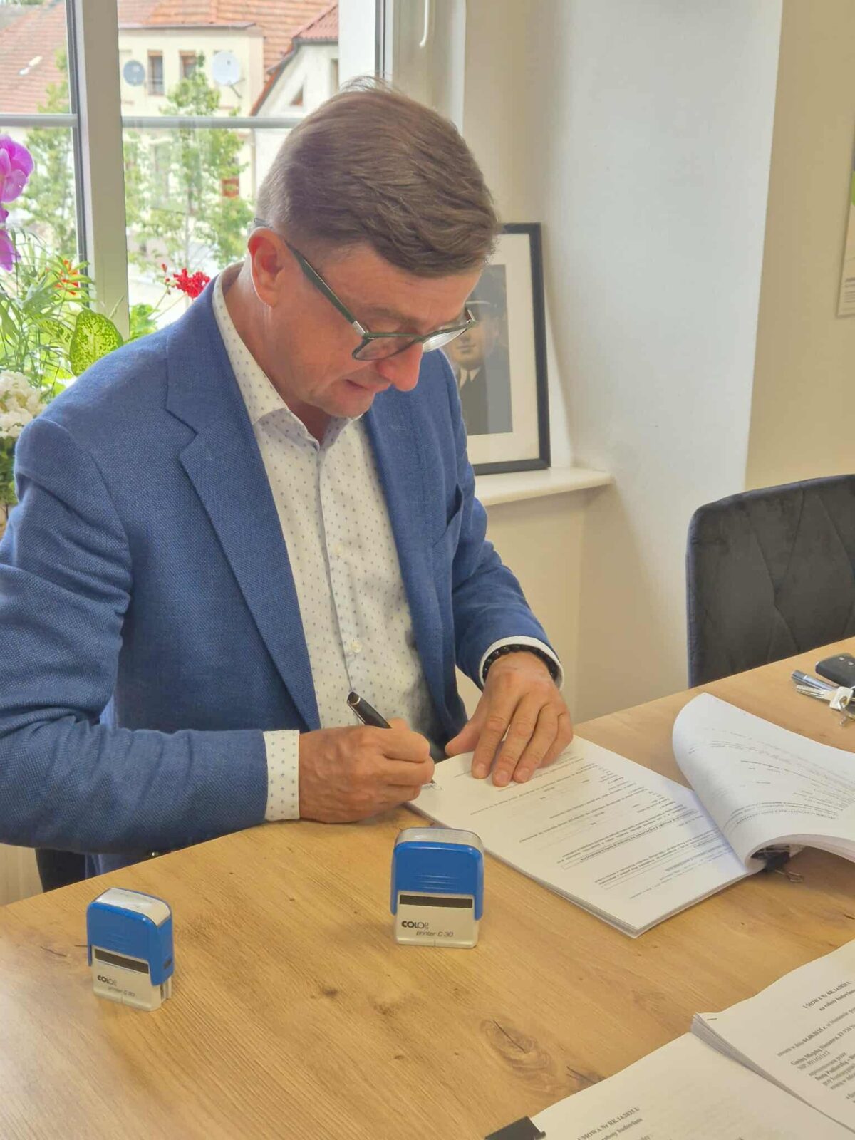📌W dniu 4 sierpnia 2025 r. w siedzibie Urzędu Miasta Burmistrz Miasta Nieszawa Beata Podlewska przy kontrasygnacie Skarbnika Miasta Karoliny Wiatrowskiej podpisała umowę na realizację zadania pn. „Przebudowa drogi gminnej Kolonia Nieszawa” ✍️